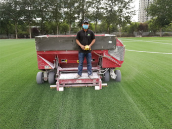 保證足夠的填充顆粒對于運(yùn)動員的安全以及保證場地的性能都是很重要的;填充物過低則導(dǎo)致人造草坪容易損壞和磨損;填充物過高,則會導(dǎo)致場地不平穩(wěn),運(yùn)動員腳底抓地力不平衡,易于引起嚴(yán)重身體損傷。填充顆粒可以保證人造草坪草絲處于垂直狀態(tài),以確保理想的球速,并降低草坪灼燒的可能性。對于填充顆粒的填充水平,應(yīng)當(dāng)咨詢場地鋪設(shè)商。