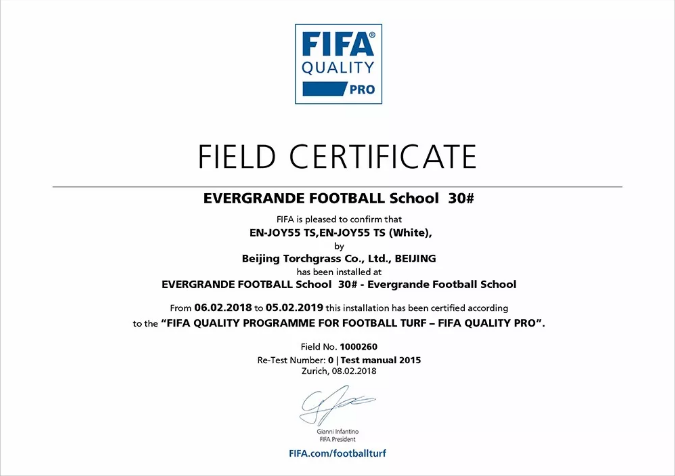 日前,由北京火炬人造草坪鋪設(shè)的廣州恒大足球?qū)W校30#足球場,已正式通過FIFA(國際足聯(lián))QUALITY PRO級別場地認(rèn)證。