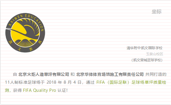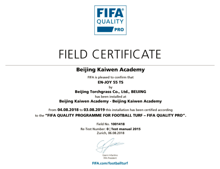 FIFA Quality Pro 是 FIFA國際足聯(lián) 認(rèn)證標(biāo)準(zhǔn)足球場。獲得FIFA Quality Pro認(rèn)證的證書場地?fù)碛谐薪覨IFA級別賽事的資格。
